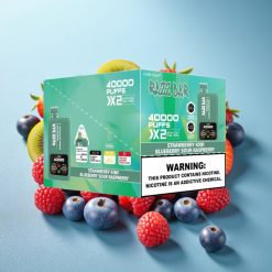 Razz Bar 40000 Puffs Power Screen Display 1.0Ω×2 Mesh Coil 650 Mah Type-C Jordbær Kiwi & Blåbær Sur Hindbær