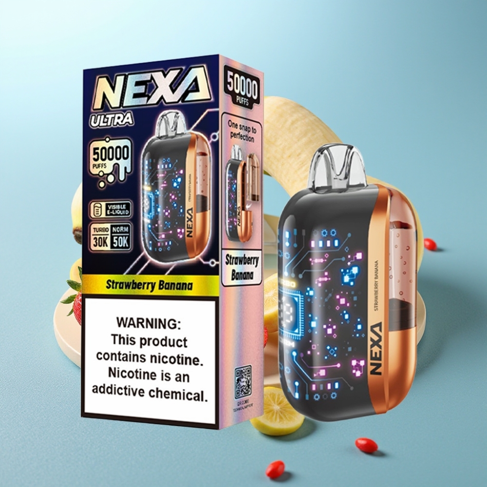 NEXA Ultra 50K Disposable Vape Jordbær Banan 20ml 5% Nikotin 3d Curved Skærm