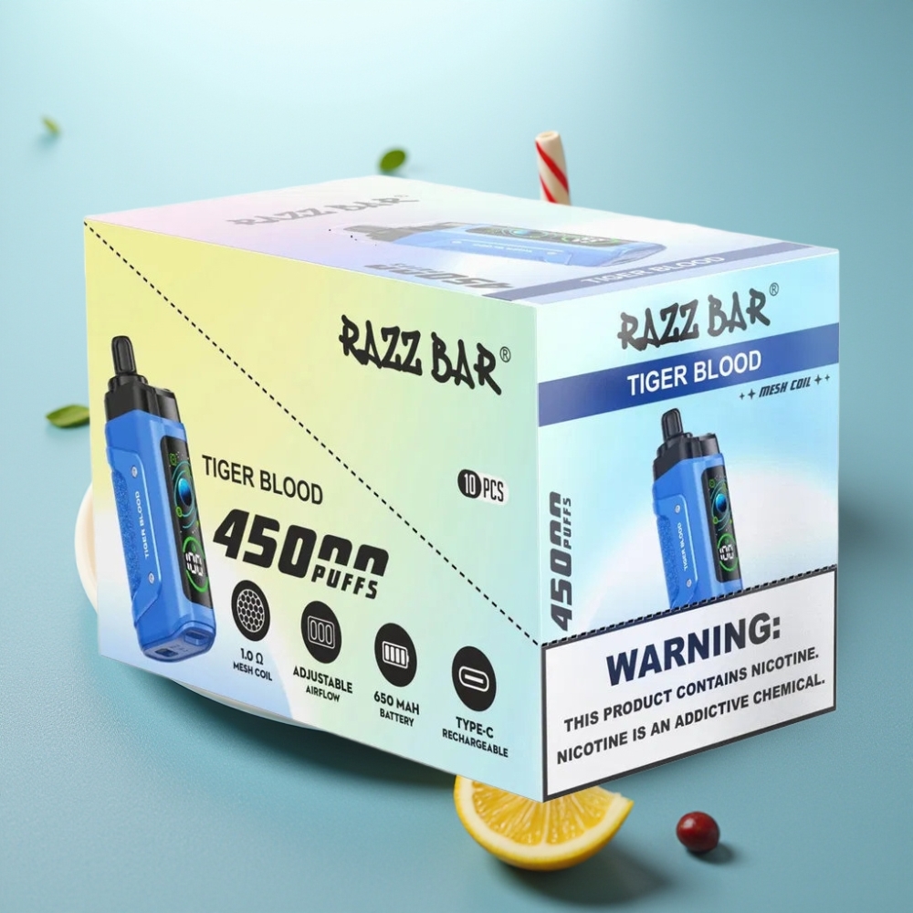 Razz Bar 45000 Puffs Tiger Blod Disposable Vape med Justerbar Luftflow & Type-C
