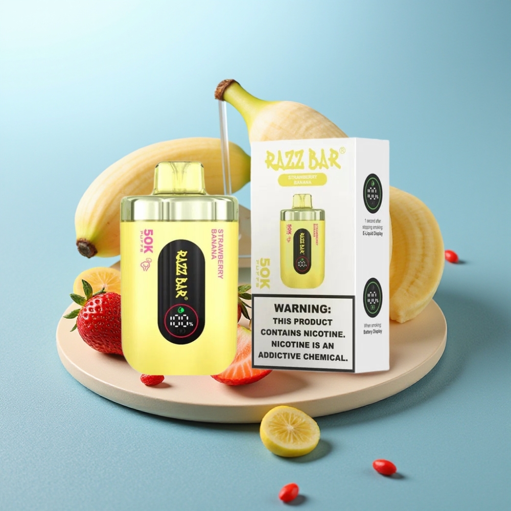 Razz Bar 50K Puffs Disposable Vape Jordbær Banan 650mAh Type-C 2% Nikotin