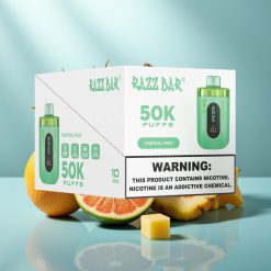 RAZZ BAR 50000 PUFF VAPE er en revolutionerende engangs e-cigaret, der kombinerer lang levetid, kraftfuld ydeevne og enestående smagsoplevelse. Denne enhed er perfekt til danske vapers, der søger bekvemmelighed, holdbarhed og intens smag uden kompromiser. Med dens intelligente design og avancerede funktioner sætter den ny standard for moderne vaping.