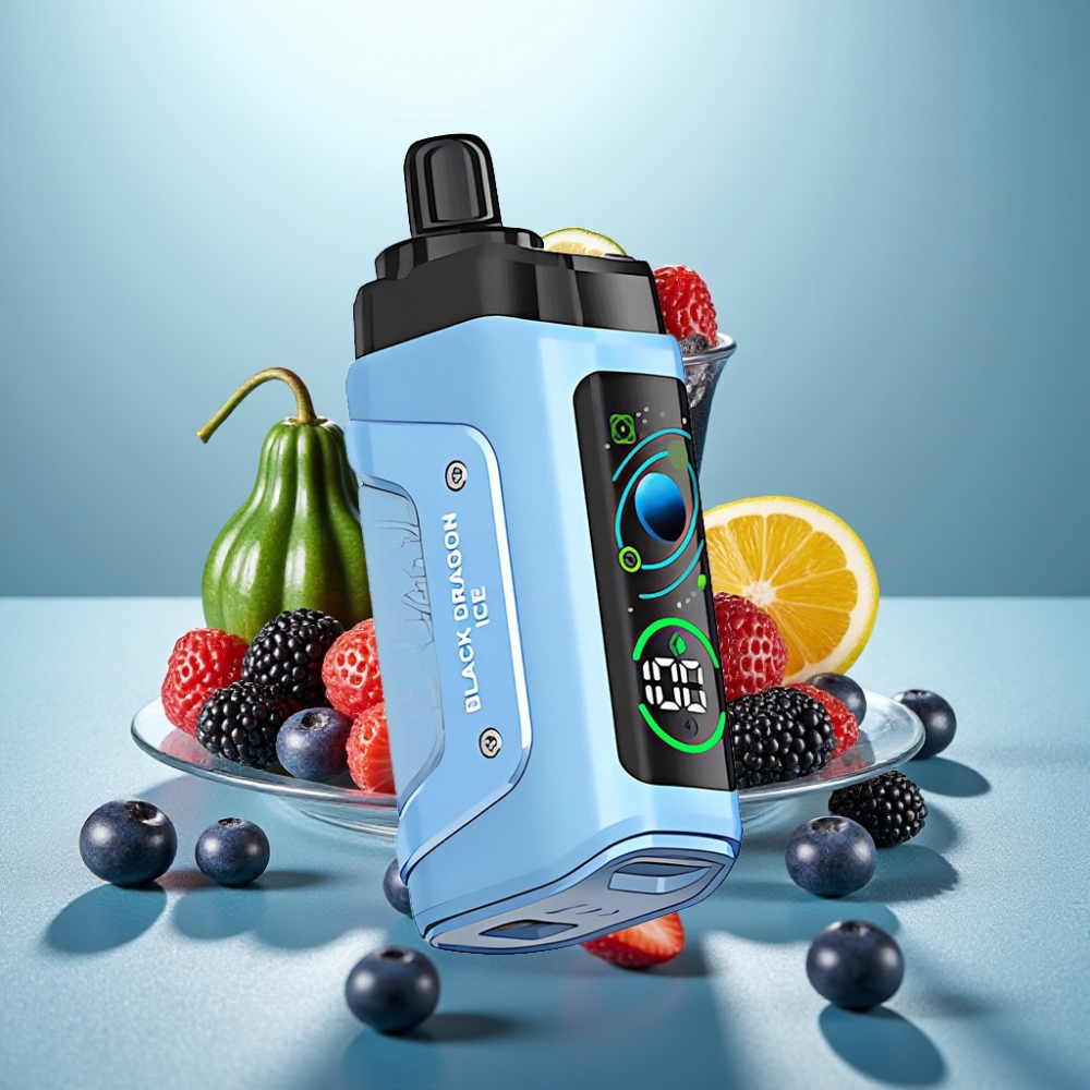Razz Bar 45000 Puffs Justerbar Luftgennemstrømning Sort Drage Is Disposable Vape